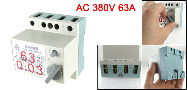 Product Name Earth Leakage Circuit Breaker Model No. DZL43(FIN) Rated Voltage AC 380V Rated Current 63A Pole 4P Rated Operating Current for Earth Leakage 0.03A(30mA) Residual Current off-time <0.1s Rated Conditional Short Circuit Current 3000A Overall Size (Approx.) 75 x 70 x 77mm / 2.95" x 2.8" x 3.0"(L*W*H) Material Plastic, Electric Components Weight 273g Package Content 1 x Earth Leakage Circuit Breaker  - Reviews