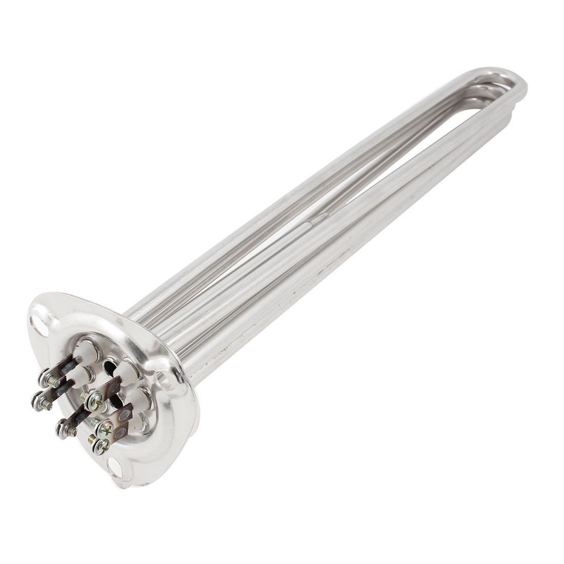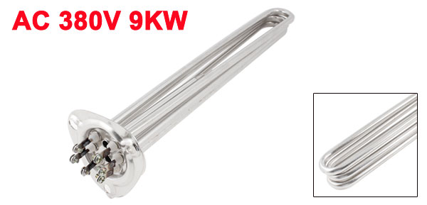 Product Name Water Heater Element Shape 3U Tube Bundle Type Main Material Stainless Steel Rated Voltage AC 380V Power 9KW Bar Diameter 8mm / 0.315" Silicone Ring Dia. 60mm / 2.4" Overall Size(Approx.) 35 x 8cm / 13.8" x 3.1"(L*Max.D) Thread Diameter 3.8mm / 0.15" Color Silver Tone Weight 543g Package Content 1 x Water Heater Element