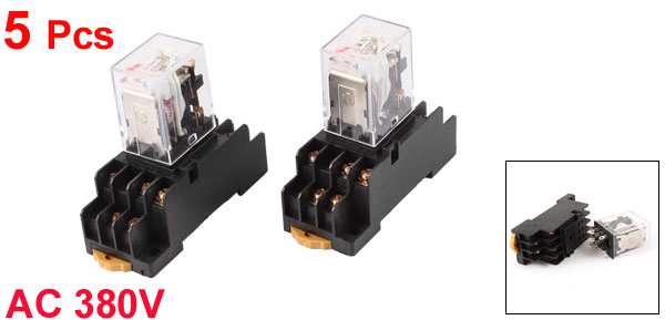 AC 380V Coil Red Indicator Light 3PDT 11 Pins Power Relay 5 Pcs + Socket Base