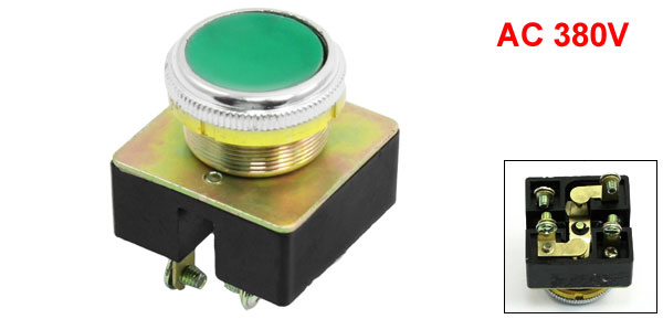 AC 380V DPST Momentary Action Round Green Button Pushbutton Switch