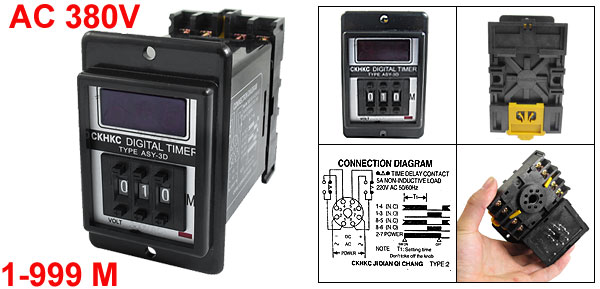 AC 380V Power on Digital Time Relay 1-999 Minutes 999M 8 Pins ASY-3D w Socket