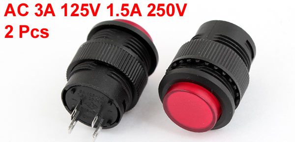 Item Name Push Button Switch Action Type Momentary Contact Type SPST(On/Off) Voltage AC 3A 125V 1.5A 250V Button Color Red, Black Button Diameter 1.2cm / 0.47" Thread Diameter 15mm / 3/8"PT Pin Number 4 Total Size 3 x1.8cm / 1.18" x 0.7"(L*Max.D) Material Plastic, Metal Weight 10g Package Content 2 x Push Switch - Reviews