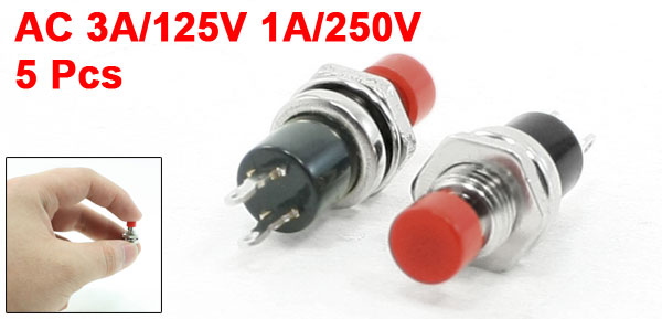 AC 3A/125V 1A/250V N/O Red 7mm Thread Momentary Push Button Switch 5 Pieces