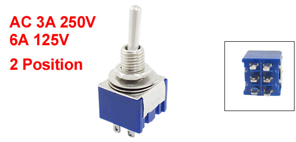 Product Name Toggle Switch Rating AC 3A 250V 6A 125V Pin Number 6 Pins Position 2 Position(On/On) Type DPDT (Latching) Screw Diameter 6mm Total Size(Approx.) 3.3 x 1.3 x 1.3cm / 1.2" x 0.5" x 0.5"(L*W*T) Weight 5g Package Content 1 x Toggle Switch - Reviews