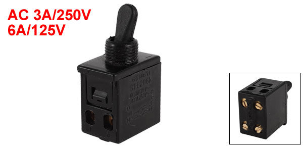 Product Name Toggle Switch Contact Type DPST NO Number of Position 2(ON/OFF) Voltage/Current AC 3A/250V 6A/125V Thread Diameter 12mm/ 0.5" Size 25 X 15 X 45mm/ 1" x 0.6" x 1.8" (L*W*H) Material Plastic, Matel Color Black Net Weight 10g Package 1 x Toggle Switch - Reviews