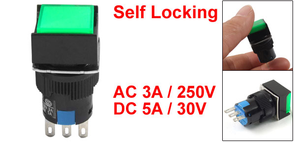 AC 3A/250V DC 5A/30V Green Square Self Locking Pushbutton Switch