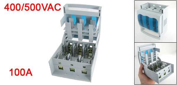 Product Name Fuse Isolating Switch Model No. HR17B-100/30 Fit Fuse 22 x 58mm / 0.87" x 2.28"(D*H)(not included here) Rated Voltage 400/500VAC Rated Limiting Short Current 50kA Rated Heating Current 100A Frequency 50Hz Poles Quantity 3 Fixing Holes Diameter 5.9mm / 0.23", 6.4mm / 0.25" Fixing Hole Spacing 62mm / 2.4" 31 x 103mm / 1.2" x 4"(L*W) Overall Size 119 x 104 x 75.6mm / 4.7" x 4.1" x 3"(L*W*H) External Material Plastic Net Weight 427g Package Content 1 x Fuse Isolating Switch - Reviews