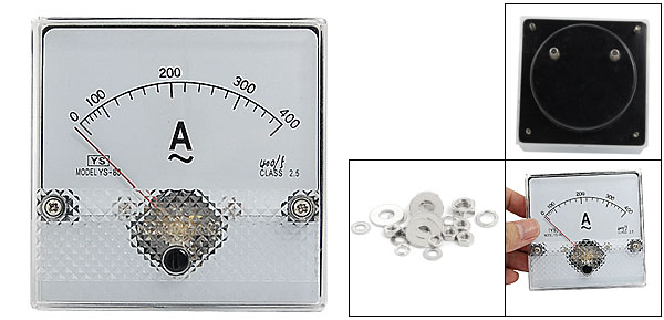Product Name Analog Ammeter Model YS-80 Measuring Current Range AC 0-400A Accuracy Class 2.5 Meter Face Size(Approx.) 8.2 x 8.2 x 1.3cm / 3.2" x 3.2" x 0.5" (L*W*H) Thread Size 0.2 x 1cm / 0.08" x 0.39" (D*L) 0.4 x 1.4cm / 0.16" x 0.55" (D*L) Total Thickness 5cm / 2" Material Plastic, Electronic Components Color White, Black Net Weight 111g Package Content 1 x Analog Ammeter Installation kits - Reviews