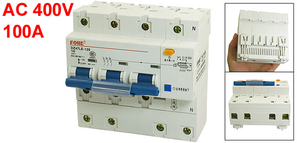 Product Name Miniature Circuit Breaker Model Number DZ47LE-125 Rated Circuit Breaking Capacity 6KA Rated Voltage AC 400V Rated Current 100A Poles 3P+N Rail Mounting 35mm DIN Rail Overall Size (Approx) 66 x 109 x 107mm/ 2.6" x 4.3" x 4.2" (L*W*H) Material Plastic, Electric Components Color As Picture Shown Weight 700g Package Content 1 x Miniature Circuit Breaker - Reviews