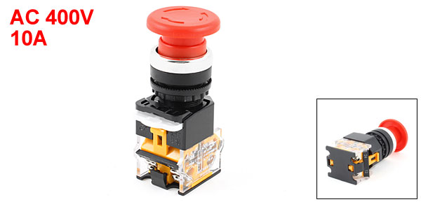 AC 400V 10A 3.5cm Button Dia 1NO 1NC Red Mushroomhead Locking Push Button Switch