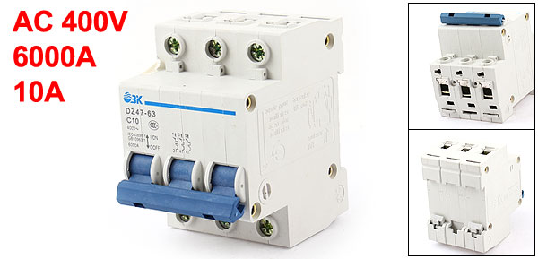 Product Name Miniature Circuit Breaker Model Number DZ47-63 C10 Rated Circuit Breaking Capacity 6000A Rated Current 10A Rated Voltage AC400V Number of Poles 3 Overall Size (Approx.) 5 x 7 x 7.5cm/2" x 2.7" x 2.9"(L*W*T ) Material Plastic, Electric Components Color As Picture Shown Weight 213g Package Content 1 x Miniature Circuit Breaker - Reviews