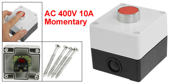 Product Name Push Button Switch Action Type Momentary Contact Type NC Working Voltage & Current AC 400V 10(6)A Push Button Diameter 2.5cm/ 0.98" Overall Size 7.7 x 7.1 x 6.4cm/3" x 2.8" x 2.5"(L*W*H) Shell Material Plastic Color Black, White Net Weight 152g Package Content 1 x Push Button Switch - Reviews