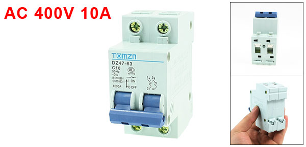 Product Name Circuit Breaker Model No. DZ47-63 C10 Exrternal Material Plastic, Metal Rated Voltage AC 400V 50Hz Rated Current 10A Breaking Capacity 4000A Total Size (Approx.) 77 x 35 x 74mm/ 3" x 1.4" x 2.9" (L*W*T) Number of Poles 2 Mount Type 35mm DIN Rail Mount Net Weight 168g Package Content 1 x Circuit Breaker - Reviews