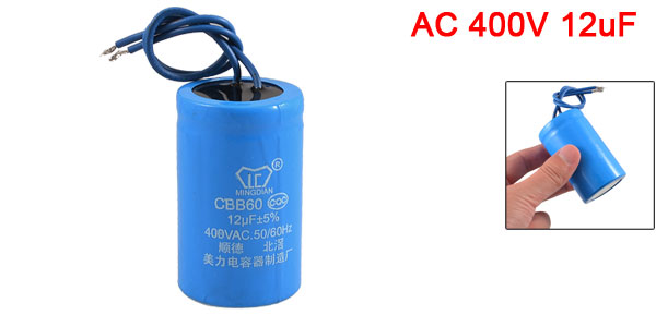 Product Name Washing Machine Capacitor Model CBB60 Material Polypropylene Film Rated Capacitance 12uF Tolerance ±5% Rated Frequency 50/60 Hz Rated Voltage AC 400V Cylinder Size 6.5 x 4cm / 2.5" x 1.6" (H*D) Wire Length 13cm / 5.1" Main Color Blue Weight 108g Package Content 1 x Washing Machine Capacitor - Reviews