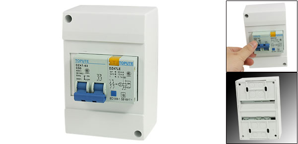 Product Name Leakage Circuit Breaker w Cover Model No. DZ47-63 C50 Material Plastic, Electric Components Rated Voltage AC 400V Rated Current 50A Breaking Capacity 3000A Frequency 50Hz Rated Residual Operating Current( I ^n) ≤ 30mA Rated Residual Non-operation Current( I ^no) ≤ 15mA Residual Current Off-time ≤ 0.1s Total Size (Approx.) 13 x 8.8 x 7cm / 5.1" x 3.4" x 2.7" (L*W*T) Number of Poles 2 Color White, Gray, Blue Weight 374g Package Content 1 x Leakage Circuit Breaker w Cover - Reviews