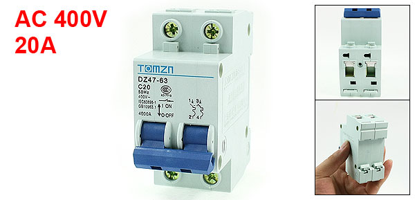 Product Name Circuit Breaker Model No. DZ47-63 C20 Exrternal Material Plastic, Metal Rated Voltage AC 400V 50Hz Rated Current 20A Breaking Capacity 4000A Total Size (Approx.) 77 x 35 x 74mm/ 3" x 1.4" x 2.9" (L*W*T) Number of Poles 2 Mount Type 35mm DIN Rail Mount Net Weight 167g Package Content 1 x Circuit Breaker - Reviews