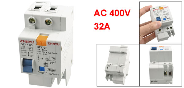 Product Name Earth Leakage Circuit Breaker Model DZ47LE Rated Voltage AC 400V 50Hz Rated Current 32A Number of Poles 1 Neutral +N Rated Breaking Capacity 6000A Rated Residual Operating Current 0.03A (30mA) Rated Residual Operating Time < 0.1S Mount Type DIN Rail Overall Size 4.5 x 9.4 x 7.3cm/ 1.8" x 3.7" x 2.9" (L*W*H)