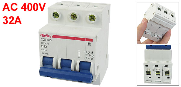 Product Name Miniature Circuit Breaker Model No. DZ47-63 C16 Rated Circuit Breaking Capacity 6000A Rated Voltage AC 400V Rated Current 32A Poles 3 Pole Rail Mounting 35mm DIN Rail Overall Size (Approx) 74 x 53 x 77mm/ 2.9" x 2.1" x 3" (L*W*T ) Material Plastic, Electric Components Color Off White Weight 289g Package Content 1 x Miniature Circuit Breaker - Reviews