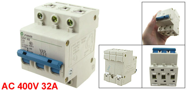 Product Name Circuit Breaker Model No. DZ47-63 C32 Material Plastic, Electric Components Rated Voltage AC 400V Rated Current 32A Breaking Capacity 6000A Total Size (Approx.) 7.7 x 3.5 x 6.5cm / 3" x 1.4" x 2.5"(K*W*H) Number of Poles 3 Mount Type DIN Rail Weight 290g Package Content 1 x Circuit Breaker - Reviews
