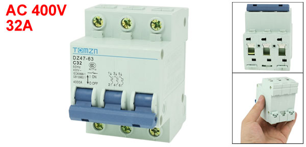 Product Name Circuit Breaker Model No. DZ47-63 C32 Exrternal Material Plastic, Metal Rated Voltage AC 400V 50Hz Rated Current 32A Breaking Capacity 4000A Total Size (Approx.) 77 x 53 x 74mm/ 3" x 2.1" x 2.9" (L*W*T) Number of Poles 3 Mount Type 35mm DIN Rail Mount Net Weight 250g Package Content 1 x Circuit Breaker - Reviews