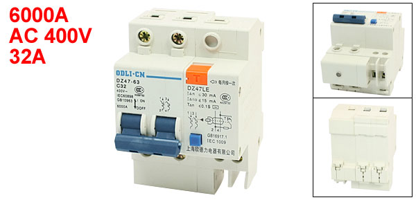 Product Name Miniature Circuit Breaker Model Number DZ47/63 C32 Rated Circuit Breaking Capacity 6000A Rated Voltage AC 400V Rated Current 32A Poles 2 Pole Rail Mounting 35mm DIN Rail Overall Size (Approx) 67 x 62 x 93mm/ 2.6" x 2.5" x 3.7" (L*W*T ) Material Plastic, Electric Components Color White Weight 263g Package Content 1 x Miniature Circuit Breaker - Reviews
