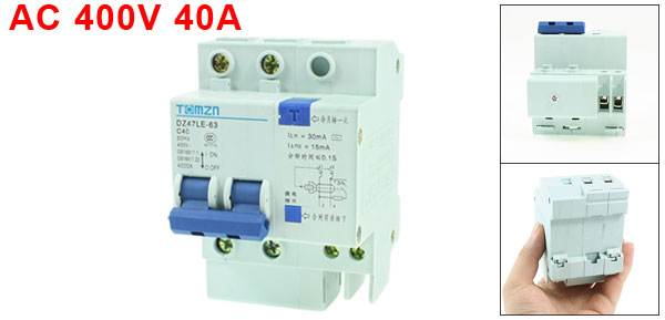 Product Name Miniature Circuit Breaker Model No. DZ47LE-63 C40 Exrternal Material Plastic, Metal Rated Voltage AC 400V 50Hz Rated Current 40A Breaking Capacity 4000A Residual Current Breaker Residual Operating Current: 30mA