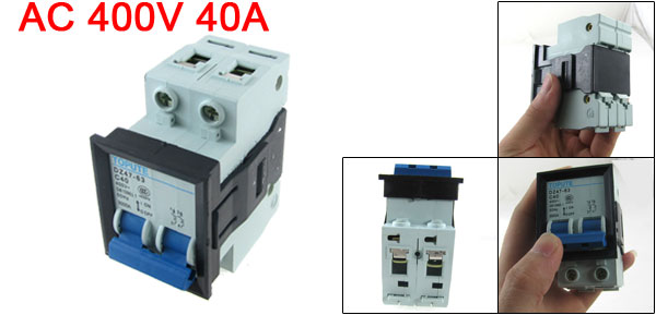 Product Name Miniature Circuit Breaker Model No. DZ47-63 C40 Rated Voltage AC 400V Rated Current 40A Rated Breaking Capacity 3000A Number of Poles 2P Overall Size (Approx.) 78 x 44 x 74mm / 3.07" x 1.7" x 2.9"(L*W*H) Material Plastic, Electric Components Weight 170g Package Content 1 x Miniature Circuit Breaker - Reviews