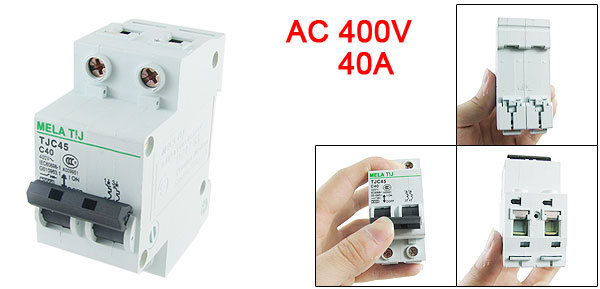Product Name Circuit Breaker Model TJC45 C40 Poles Quantity 2 Poles Rated Current 40A Rated Voltage AC 400V Rated Breaking Capacity 3000A Overall Size (Approx.) 35 x 74.6 x 78.5mm / 1.4" x 2.9" x 3.1" (L*W*H) Material Plastic, Electric Components Weight 177g Package Content 1 x Circuit Breaker - Reviews