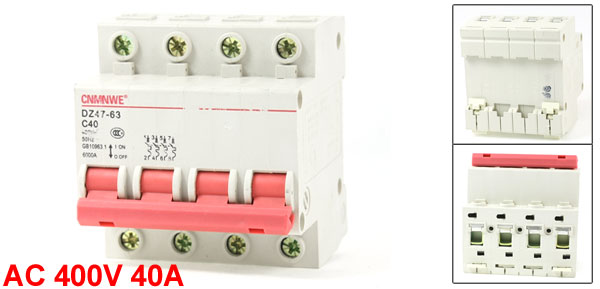 Product Name Miniature Circuit Breaker Model No. DZ47-63/4P Exrternal Material Plastic, Metal Rated Voltage AC 400V 50Hz Rated Current 40A Breaking Capacity 6000A Total Size (Approx.) 77 x 70 x 75mm/ 3" x 2.8" x 3" (L*W*T) Number of Poles 4 Mounting Type 35mm DIN Rail Mounted Net Weight 322g Package Content 1 x Miniature Circuit Breaker - Reviews