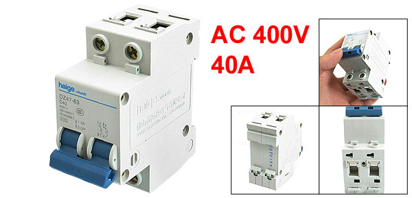 Product Name Miniature Circuit Breaker Model No. DZ47-63 C40 Rated Voltage AC 400V Rated Current 40A Rated Breaking Capacity 6000A Number of Poles 2P Overall Size (Approx.) 78 x 66 x 35mm / 3.07" x 2.6" x 1.4" (L*W*T) Material Plastic, Electric Components Weight 171g Package Content 1 x Miniature Circuit Breaker - Reviews