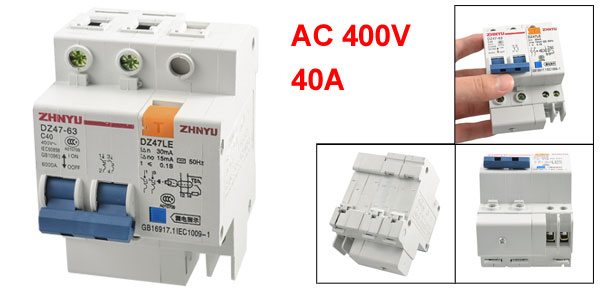 Product Name Earth Leakage Circuit Breaker Model DZ47LE C40 Rated Voltage AC 400V 50Hz Rated Current 40A Number of Poles 2 Rated Breaking Capacity 6000A Rated Residual Operating Current 0.03A (30mA) Rated Residual Operating Time < 0.1S Mount Type DIN Rail Overall Size 9.5 x 6.3 x 7.5cm/ 3.7" x 2.5" x 3" (L*W*H)