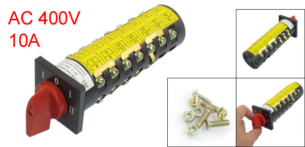 Product Name Combination Switch Model No. HZ5B-10/7 T72 Ui AC 400V Ith 10A Power 4KW Rated Current 10A Positions II-I-0-I-II Terminal Number 24 Mounting Hole Diameter 4.8mm / 0.19" Overall Size 48 x 48 x 163mm / 1.9" x 1.9" x 6.4"(L*W*H) External Material Plastic Net Weight 311g Package Content 1 x Combination Switch