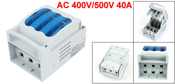 Main Color Blue,Gray Brand DMiotech Country of Manufacture CHINA Model HR17B-40/3200 Rated Limiting Short Current 50kA Material Plastic, Metal Product Name Fuse Isolating Switch Net Weight 300g Rated Voltage AC 400V/500V 50Hz Package Content 1 x Fuse Isolating Switch Rated Current 40A Fuse Quantity 3 Overall Size(Approx) 11.5 x 7.7 x 7.3cm/ 4.5" x 3" x 2.9"(L*W*H) - Reviews