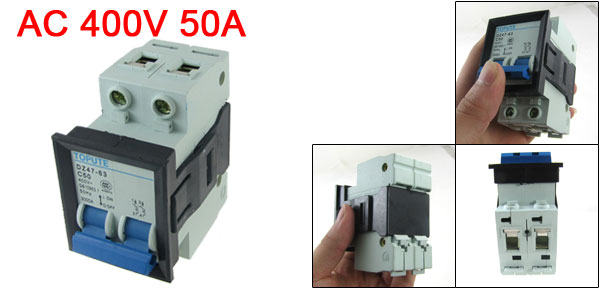 Product Name Miniature Circuit Breaker Model No. DZ47-63 C50 Rated Voltage AC 400V Rated Current 50A Rated Breaking Capacity 3000A Number of Poles 2P Overall Size (Approx.) 78 x 44 x 74mm / 3.07" x 1.7" x 2.9"(L*W*H) Material Plastic, Electric Components Weight 166g Package Content 1 x Miniature Circuit Breaker - Reviews