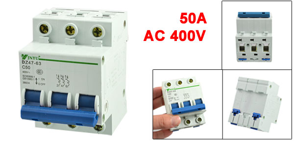 Product Name Miniature Circuit Breaker Model Number DZ47-63 C50 Rated Circuit Breaking Capacity 3000A Rated Current 50A Rated Voltage AC 400V Instantuneous Release Type C Type Number of Poles 3 Overall Size (Approx.) 7.7 x 5.3 x 7.5cm/ 3" x 2.1" x 3"(L*W*H) Material Plastic, Electric Components Weight 263g Package Content 1 x Miniature Circuit Breaker - Reviews