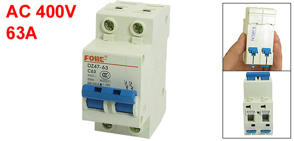Product Name Miniature Circuit Breaker Model Number DZ47-63 C63 Rated Circuit Breaking Capacity 6000A Rated Voltage AC 400V Rated Current 63A Poles 2 Pole Rail Mounting 35mm DIN Rail Overall Size (Approx) 74 x 35 x 77mm/ 2.9" x 1.4" x 3" (L*W*T ) Material Plastic, Electric Components Color As Picture Shown Weight 176g Package Content 1 x Miniature Circuit Breaker - Reviews