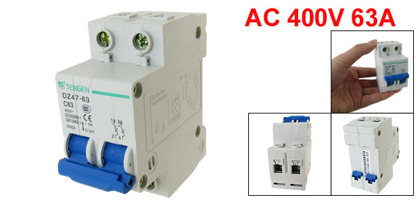 Product Name Circuit Breaker Model No. DZ47-63 C63 Material Plastic, Electric Components Rated Voltage AC 400V Rated Current 63A Breaking Capacity 4500A Frequency 50/60Hz Total Size (Approx.) 77 x 35 x 65mm/ 3" x 1.4" x 2.6" (L*W*H) Number of Poles 2 Mount Type DIN Rail Color As Picture Shown Weight 181g Package Content 1 x Circuit Breaker - Reviews