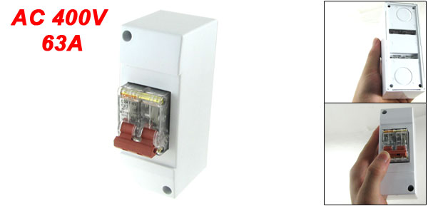 Product Name Miniature Circuit Breaker Model No. DZ47-63 C63 Feature Transparent, with Plastic Housing Rated Voltage AC 400V Rated Current 63A Rated Breaking Capacity 3000A Number of Poles 2P Overall Size (Approx.) 130 x 52 x 79mm / 5.1" x 2.0" x 3.1"(L*W*H) Material Plastic, Electric Components Weight 228g Package Content 1 x Miniature Circuit Breaker - Reviews
