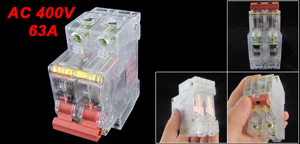 Product Name Miniature Circuit Breaker Model No. DZ47-63 C63 Feature Din Rail Mount, Transparent Rated Voltage AC 400V Rated Current 63A Rated Breaking Capacity 3000A Number of Poles 2P Overall Size (Approx.) 80 x 35 x 74mm / 3.1" x 1.4" x 2.9"(L*W*H) Material Plastic, Electric Components Weight 155g Package Content 1 x Miniature Circuit Breaker - Reviews