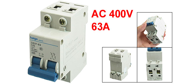 Product Name Miniature Circuit Breaker Model No. DZ47-63 C63 Rated Voltage AC 400V Rated Current 63A Rated Breaking Capacity 4500A Number of Poles 2P Overall Size (Approx.) 78 x 66 x 35mm / 3.07" x 2.6" x 1.4" (L*W*T) Material Plastic, Electric Components Weight 178g Package Content 1 x Miniature Circuit Breaker - Reviews