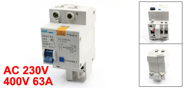 Product Name Miniature Circuit Breaker Model No. DZ47-63 C63 Exrternal Material Plastic, Metal Rated Voltage AC 230V/400V Rated Current 63A Breaking Capacity 4500A Residual Current Breaker Residual Operating Current: 30mA