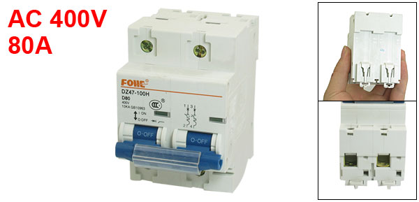 Product Name Miniature Circuit Breaker Model Number DZ47-100H D80 Rated Circuit Breaking Capacity 10KA Rated Voltage AC 400V Rated Current 80A Poles 2 Pole Rail Mounting 35mm DIN Rail Overall Size (Approx) 75 x 54 x 83mm/ 2.97" x 2.1" x 3.2" (L*W*T ) Material Plastic, Electric Components Color As Picture Shown Weight 304g Package Content 1 x Miniature Circuit Breaker - Reviews