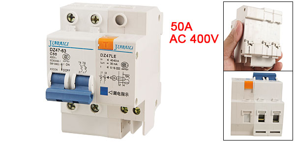 Product Name Earth Leakage Circuit Breaker Model DZ47-63 C50 Rated Current 50A Rated Voltage AC 400V Rated Circuit Breaking Capacity 6000A Mount Type 35mm DIN Rail Total Size (Approx.) 77 x 62 x 71mm/ 3" x 2.4" x 2.8" (L*W*H) Number of Poles 2 Material Plastic, Electric Components Color As Picture Shown Weight 276g Package Content 1 x Earth Leakage Circuit Breaker - Reviews