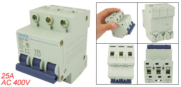 Product Name Miniature Circuit Breaker Model Number DZ47-63 C25 Rated Circuit Breaking Capacity 3000A Rated Current 25A Rated Voltage AC400V Number of Poles 3 Overall Size (Approx.) 7.7 x 6.5 x 5.3cm/3" x 2.5" x 2.1"(L*W*T ) Material Plastic, Electric Components Color As Picture Shown Weight 220g Package Content 1 x Miniature Circuit Breaker - Reviews