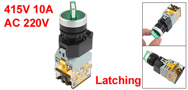 Product Name Push Button Switch Contact Type 2NO(DPST) Action Type Rotary Selector Latching Position Number 2 Position Ith 10A Ui 415V LED Voltage AC 220V Terminal Quantity 6 Panel Cutout Diameter 22mm / 0.9"(7/8") Fit Panel Max. Thickness 6mm / 0.24" Total Size(Approx) 3.2 x 2.9 x 9.5cm / 1.3" x 1.2" x 3.7" (L*W*H) External Material Plastic, Metal Button Color Green Net Weight 67g Package Content 1 x Push Button Switch - Reviews