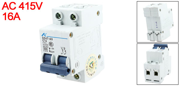 AC 415V 16A 2 Pole Overload Protection MCB Mini Circuit Breaker DZ47-63 C16