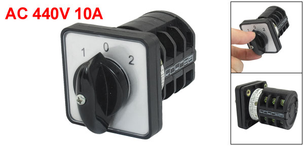 Product Name Changeover Switch Model No. LW8-10/3 Voltage AC 440V Ith AC 10A Position 3 Positions (1-0-2) Terminal Quantity 12 Total Size 48 x 48 x 76mm/ 2.4" x 2.4" x 3.0"(L*W*H) External Material Plastic Net Weight 94g Package Content 1 x Changeover Switch - Reviews