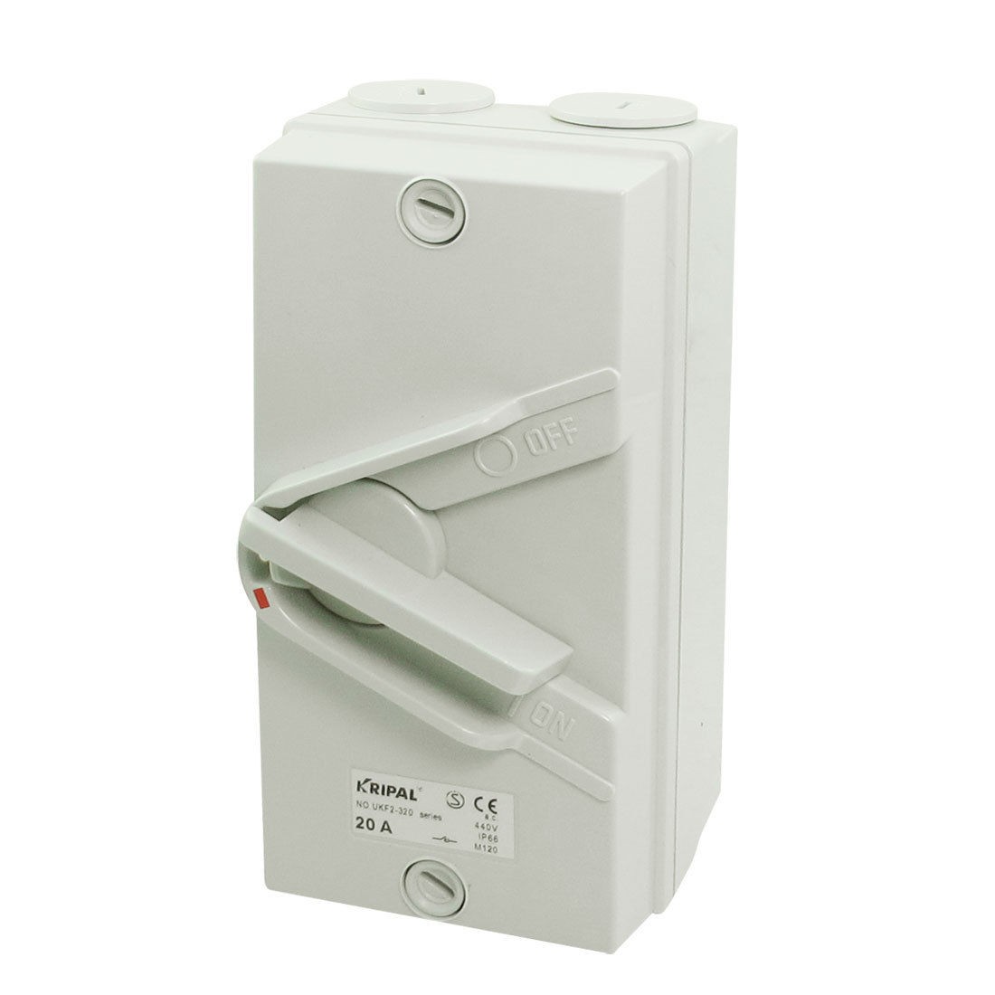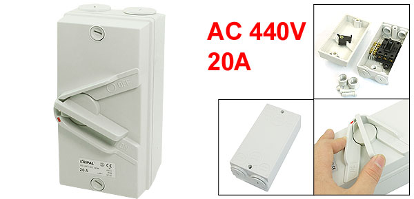 Product Name Isolating Switch Model UKF2-320 Rated Current 20A Rated Voltage AC 440V Type 2 Position(OFF-ON) Contact 3PST Waterproof Grade IP66 Mount Hole Center Distance 124 x 59mm/4.9" x 2.3"(L*W) Fixing Mount Hole Diameter 6mm/2.4" Total Size 161 x 78 x 90mm/6.3" x 3.1" x 3.5"(L*W*H) External Material Plastic Color White Net Weight 441g Package Content 1 x Isolating Switch - Reviews