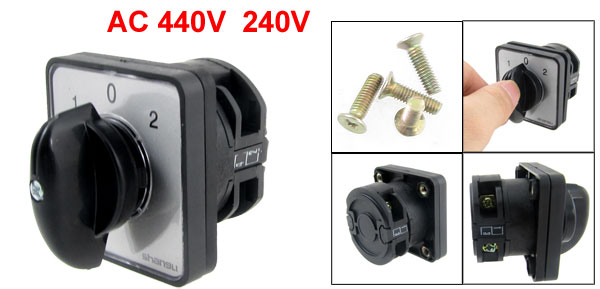 AC 440V 240V 1-0-2 Position Rotary Cam Changeover Switch Black