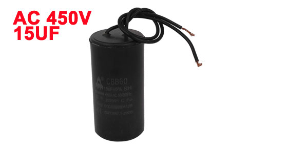 Product Name Motor Capacitor Model CBB60 Material(External) Plastic Rated Capacitance 15uF Tolerance ±5% Rated Frequency 50/60Hz Rated Voltage AC 450V Size 7.5 x 3.8cm / 3" x 1.5" (L * D) Cable Length 17cm /6.7" Main Color Black Weight 84g Package Content 1 x Motor Capacitor - Reviews
